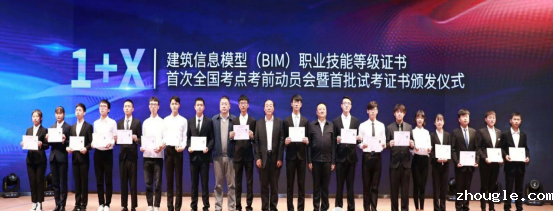 2019年11月6日,我院魏永恒副院长带队参加在河北廊坊召开“1+X”建筑信息模型BIM职业技能等级证书首次全国考点考前动员会暨首批试考证书颁发仪式,来自住房和城乡建设部、全国住房和城乡建设职业教育教学指导委员会、中国建设教育协会的相关负责人和272所院校的550余名教师参加了会议。会上,为来自全国18所职业院校BIM证书上00001的学生颁发“1+X”建筑信息模型(BIM)职业技能等级证书,这是国家职业教育改革“1+X”证书制度试点工作开展以来全国发放的首批证书。